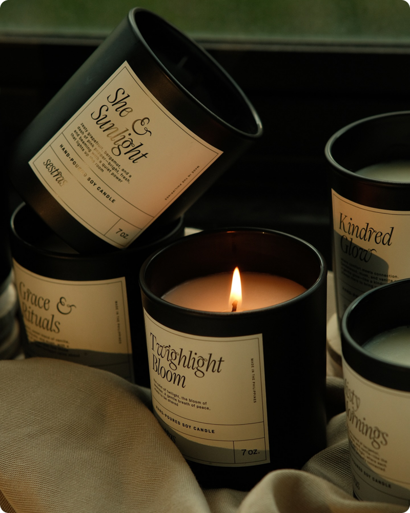 Hand-poured soy candles made in the Philippines.